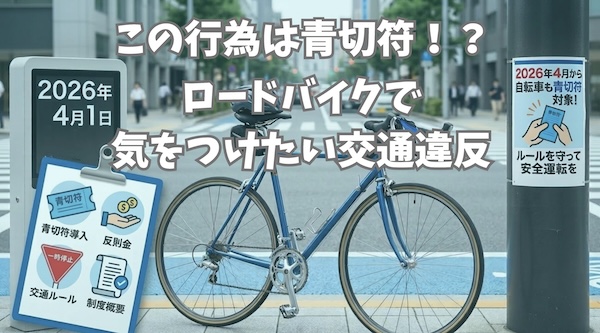 ロードバイクの青切符違反行為は?2026年導入の自転車交通反則制度について、骨伝導イヤホンやサイコン使用など、ロードバイクで気をつけたい交通違反を分かりやすく解説します。