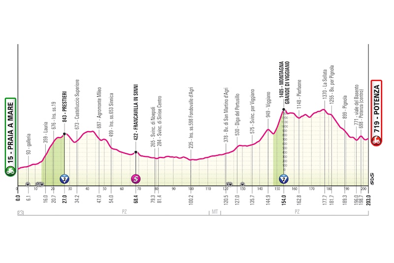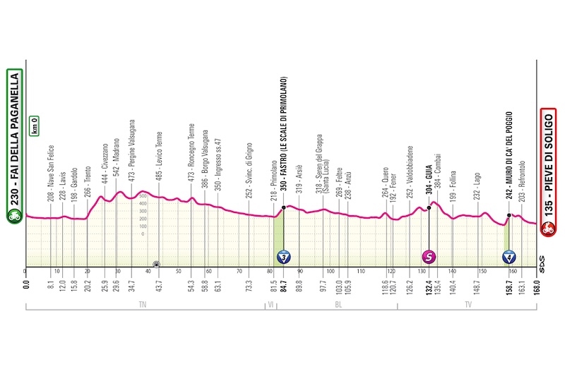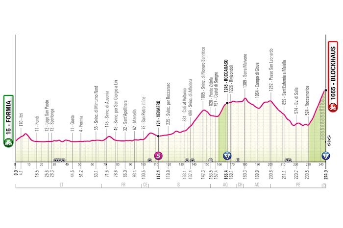 フィニッシュはカリ(Carì)での一直線の上りゴール。短距離ながらも連続する登坂と高地条件により、クライマーにとっては非常に厳しい戦いとなります。
