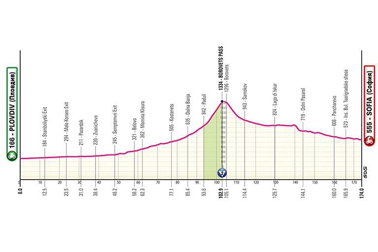 第3ステージ: プロヴディフ→ソフィア(首都)>ボロヴェツ峠を越えるが平坦基調