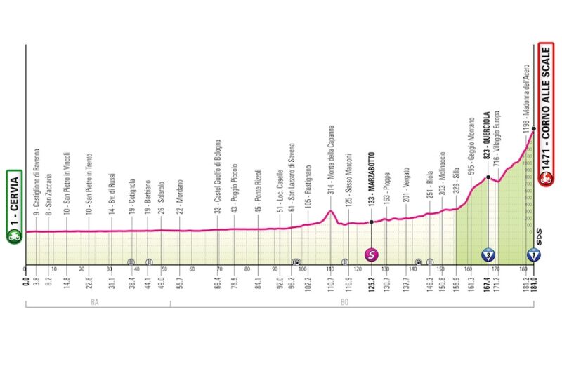 平坦基調でスタートしますが、徐々にアップダウンが増え、トスカーナ=エミリア・アペニン山脈へと突入。フィニッシュは山頂ゴール!
