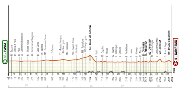 今年のミラノ〜サンレモの総距離は、2025年よりも9km長い298kmに設定されました。