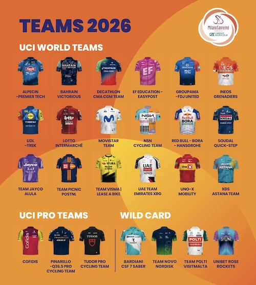 ミラノ〜サンレモ2026 出場チーム一覧