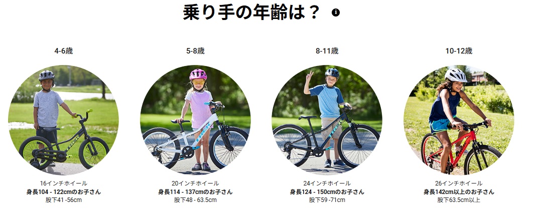 TREK公式ページでお子様に合うのサイズと走行目的にあう自転車を見つけられます。