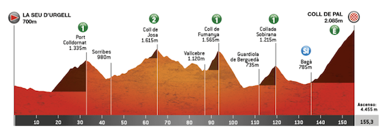 第5ステージ:ラ・セウ・ドゥルジェイ 〜 ラ・モリーナ / コル・デ・パル(山岳ステージ 155.3 km)