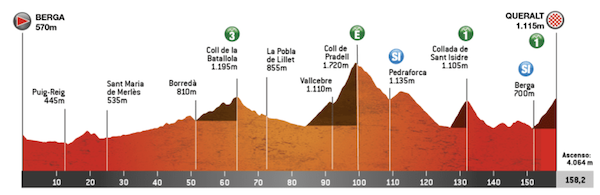 ベルガからケラルト(Queralt)を目指す、総合優勝を争うクライマーたちの最終的な激突が期待される。